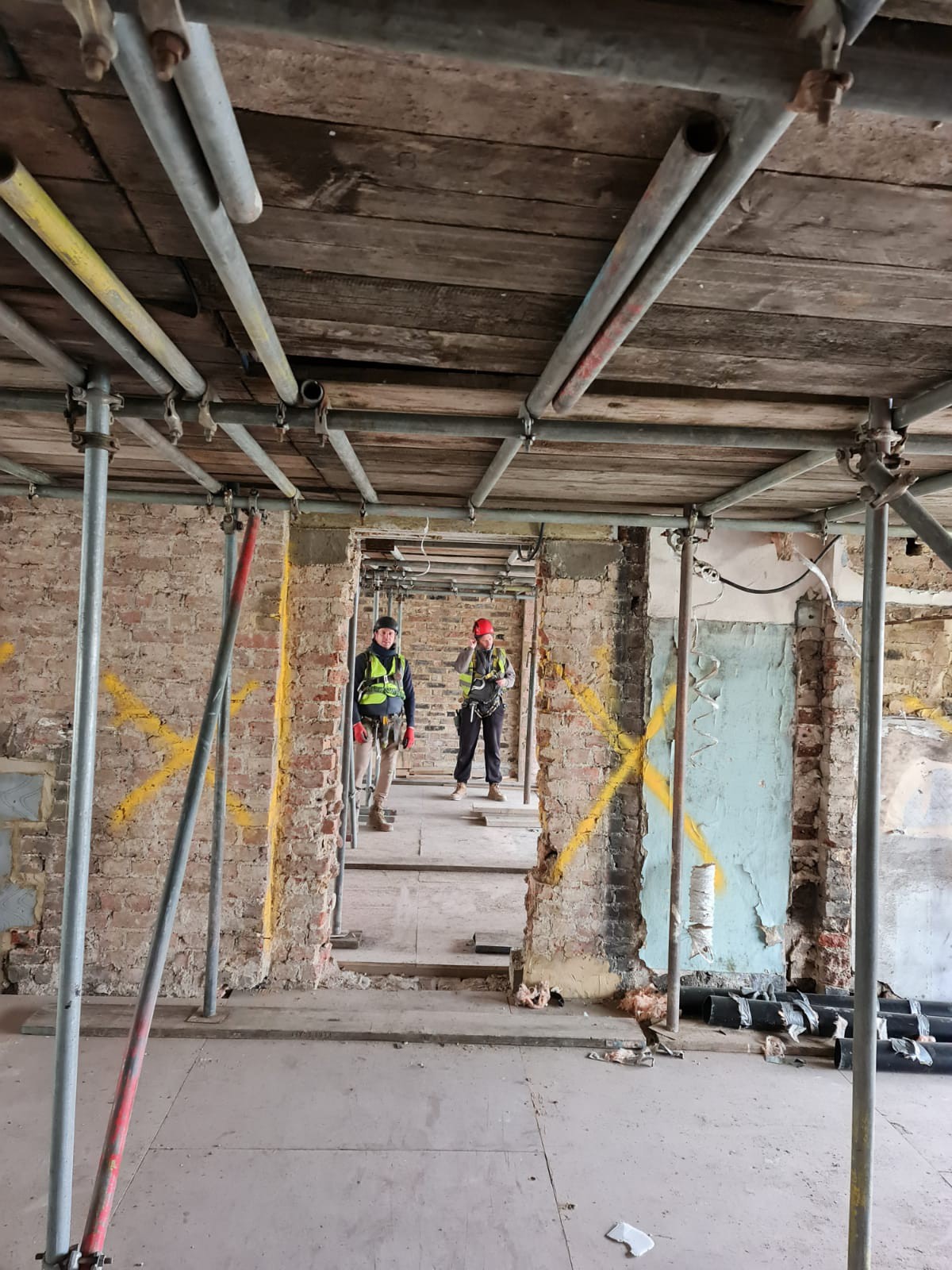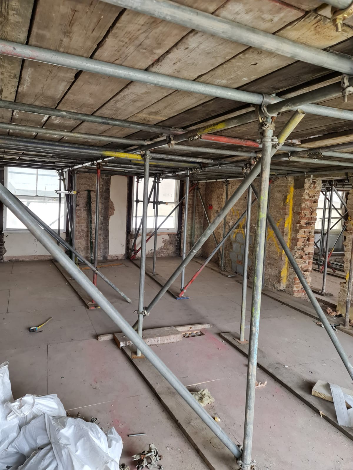 As the site progressed into the demolition phase, the scaffold was adapted accordingly and included:
