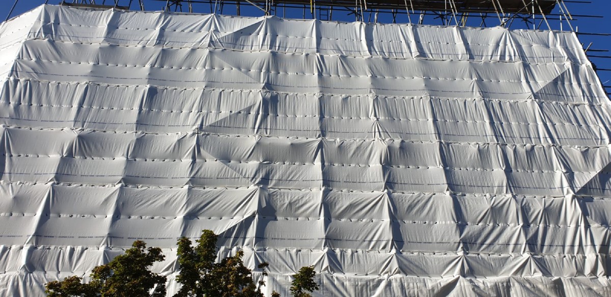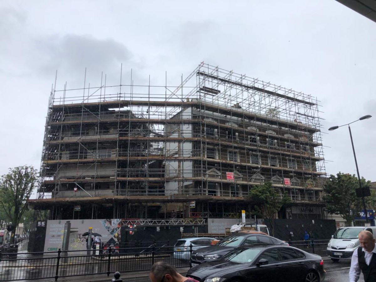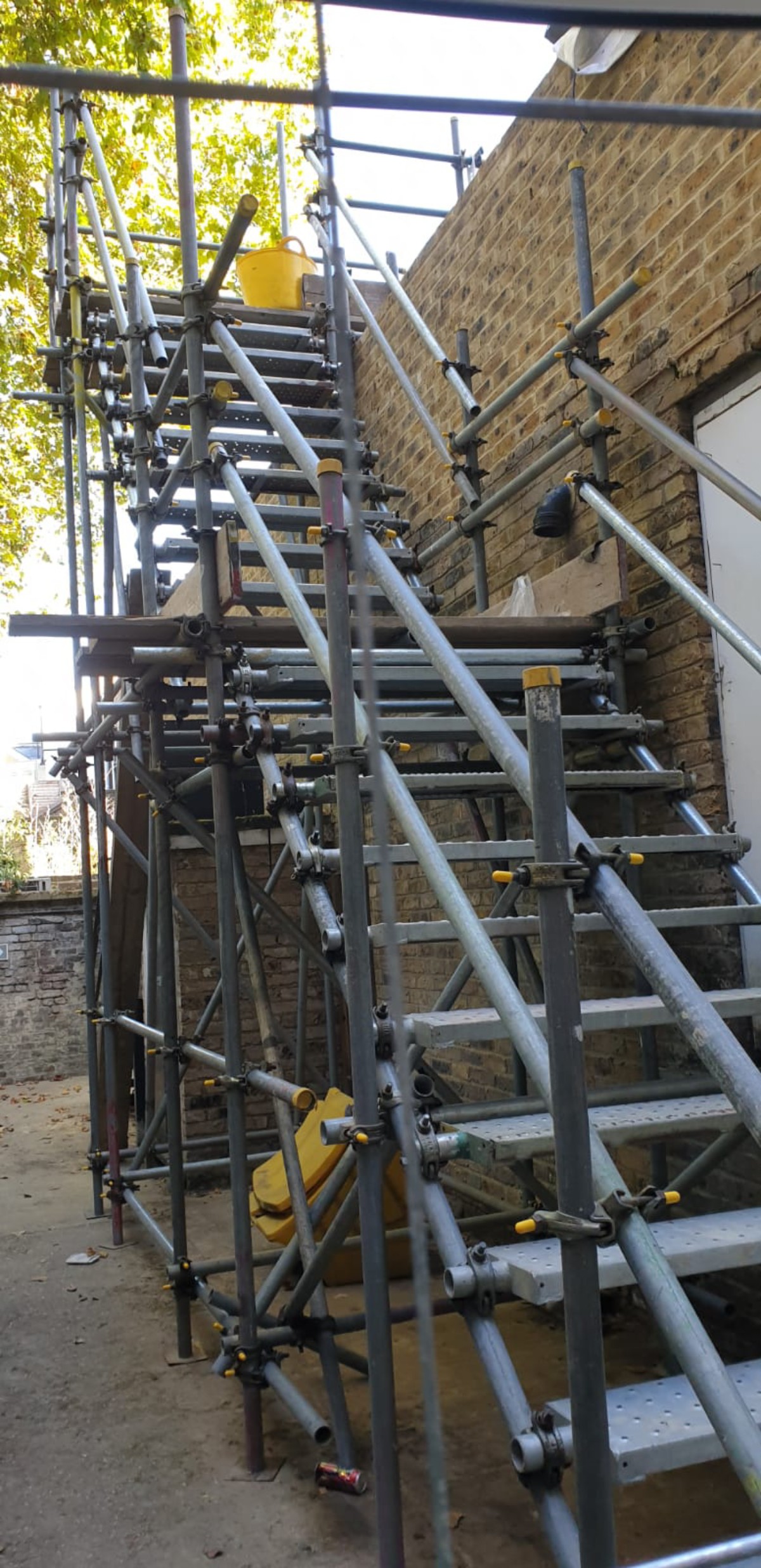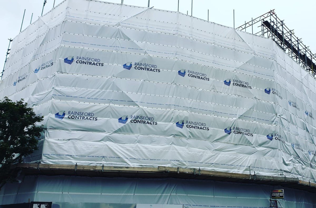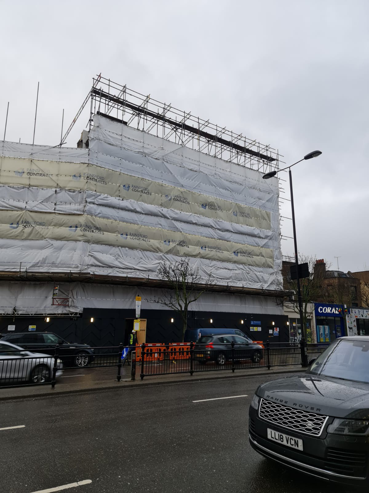 This complex, long-term project began in 2017 but experienced delays due to contractual issues. The scaffolding encompassed all elevations, fully boarded, and included a pedestrian splash fan and full temporary roof covering.
